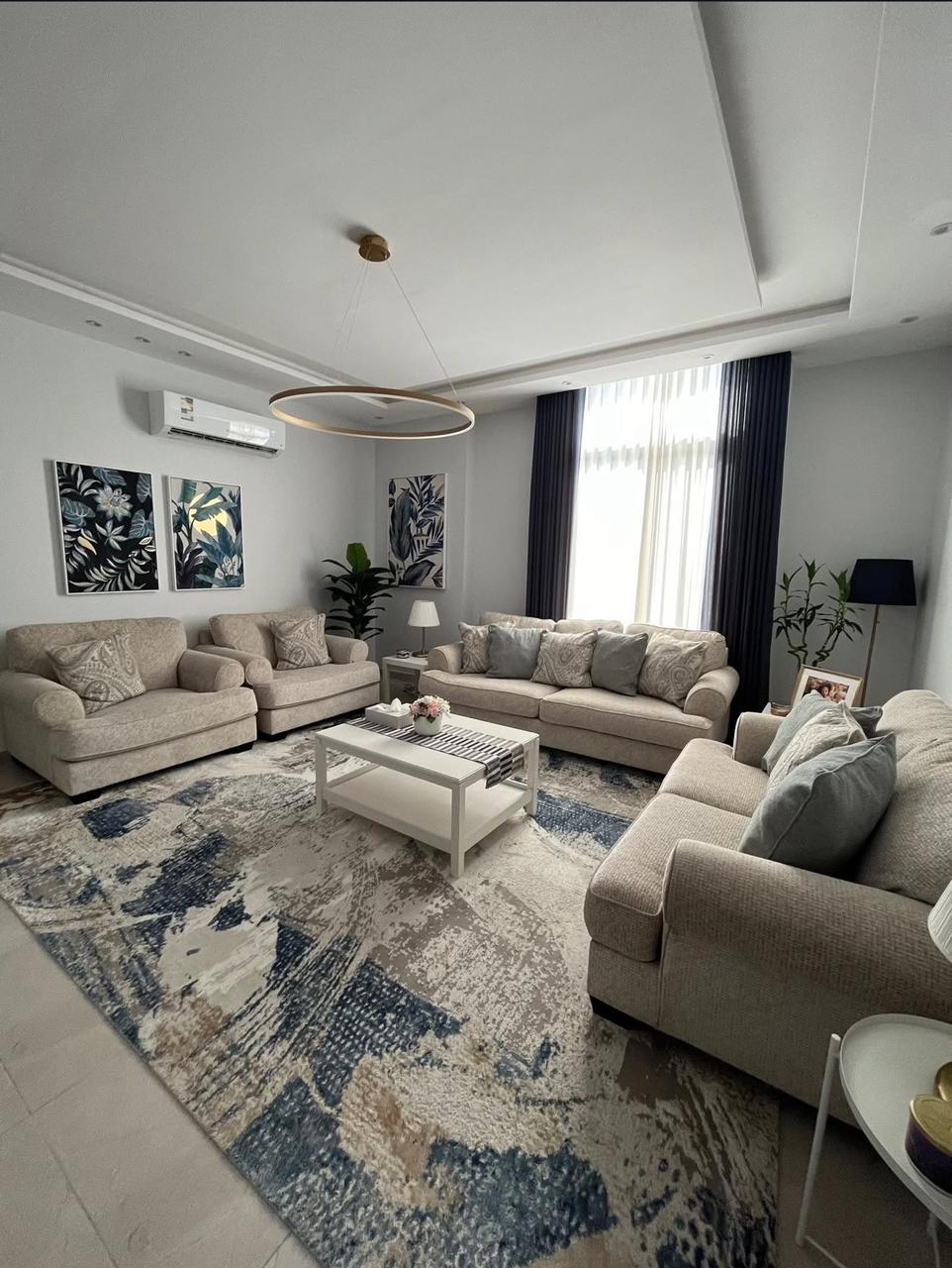 التفصيل والقياس: متاح للتنفيذ بمقاسات خاصة تناسب مساحة صالتك، مع خدمة رفع المقاسات المنزلية مجاناً.