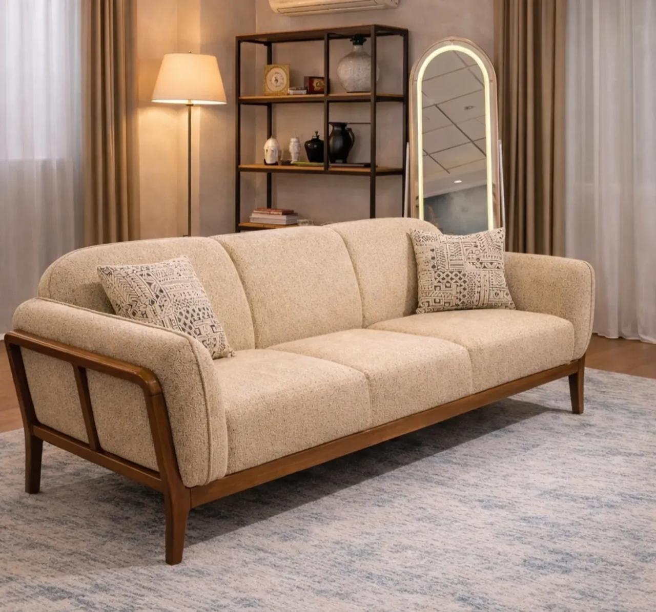 المكونات: يتوفر الطقم ككنب متصل أو قطع منفصلة، مع إمكانية إضافة “بوف” دائرية أو مستطيلة بنفس التصميم.